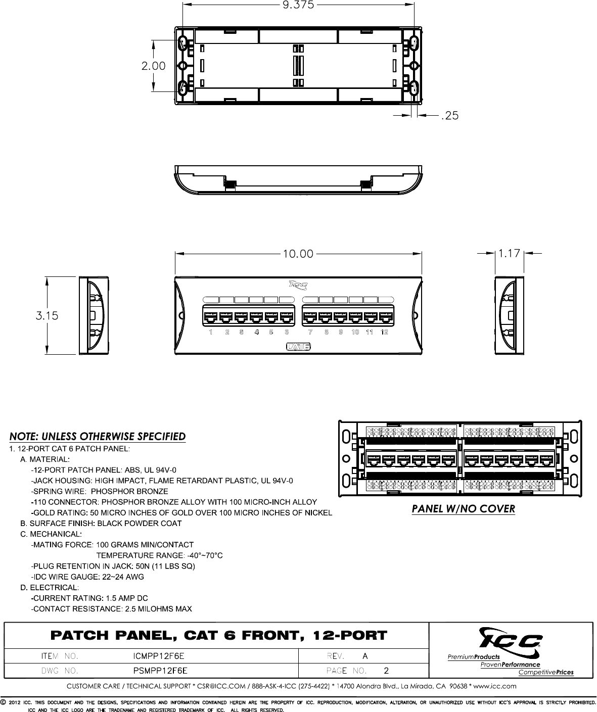 Panele krosowe ICC ICMPP012U6 Arkusz Danych